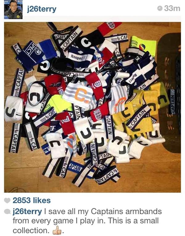 画像に添えられていたコメントによると、「自分がプレーした全ての試合で自分がつけたキャプテンマークを全部とってあるんだ。ちょっとしたコレクションだよ」とのこと。