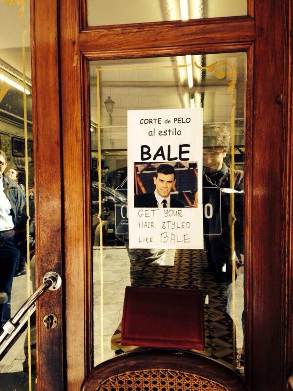 マドリーへ移籍してから2ヶ月。怪我などコンディションの問題もあって出遅れ、高額の移籍金が疑問視されていたベイルだが、昨季のプレミアリーグMVPの実力を徐々に発揮中。街でも彼が認められつつあるようで、マドリードの美容室では最近こんな張り紙が見られるようになった。