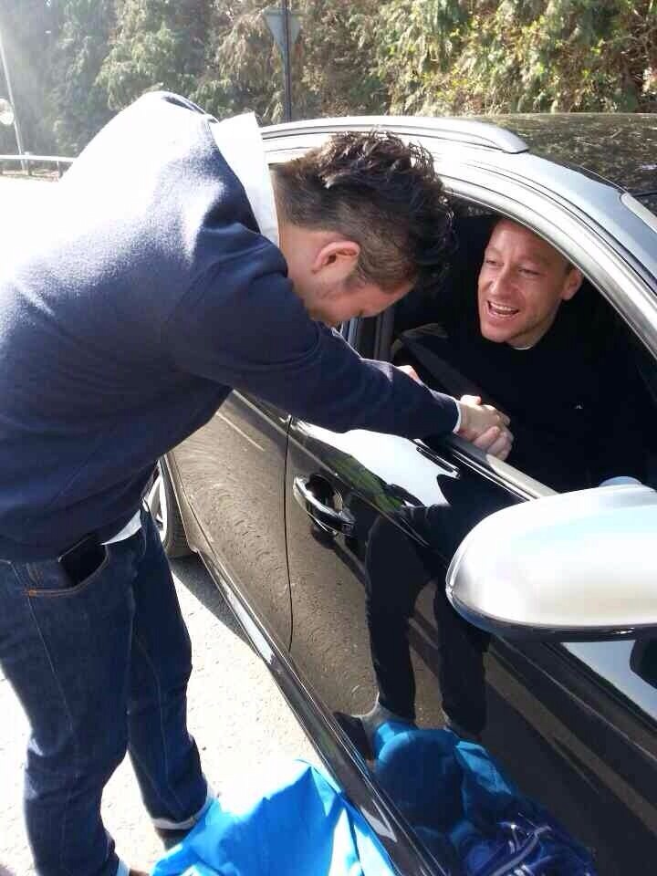 車越しに、手前のファンから順々にサービスするテリー。1メートル、また1メートルとこちらに近付くにつれその緊張感は増していく。そして、今田さんの前へと憧れの背番号26がやって来た。