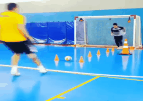 詳細は不明ながら、躍動感あふれるフットサルのゴレイロ(GK)のトレーニング風景を見つけたので紹介。