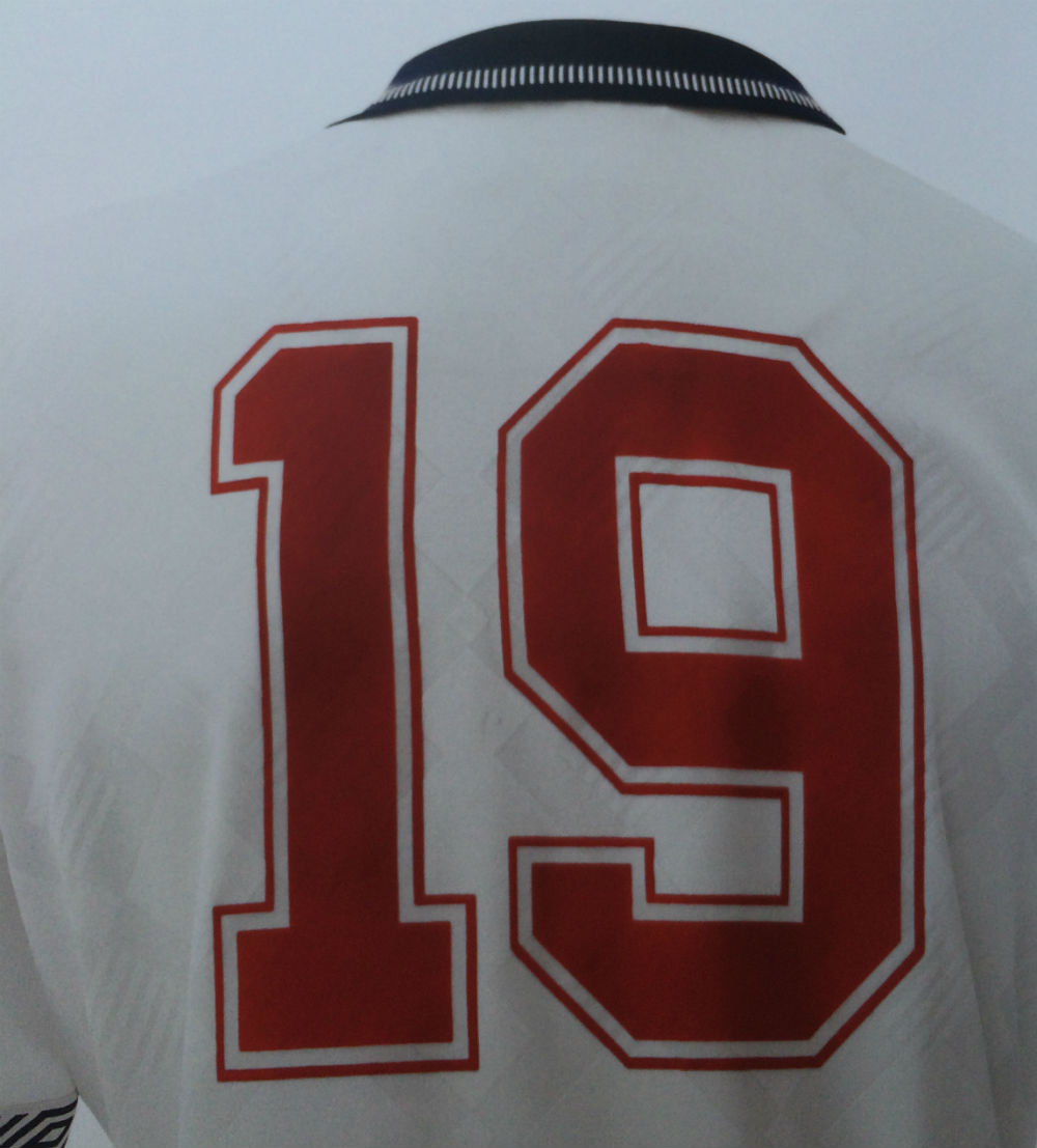 例えば、「アルゼンチン90年代型」「イタリア94年型」とか何通りかのパターンがあり、当時は有名書体を使っているチームが多かった。そのために、フォントさえもっていればコピーもたやすかった。何よりオフィシャルで実際に使われているユニフォームの背番号はほとんど販売されていなかったのだから、専門店は自作するしか策がなかったのだ。