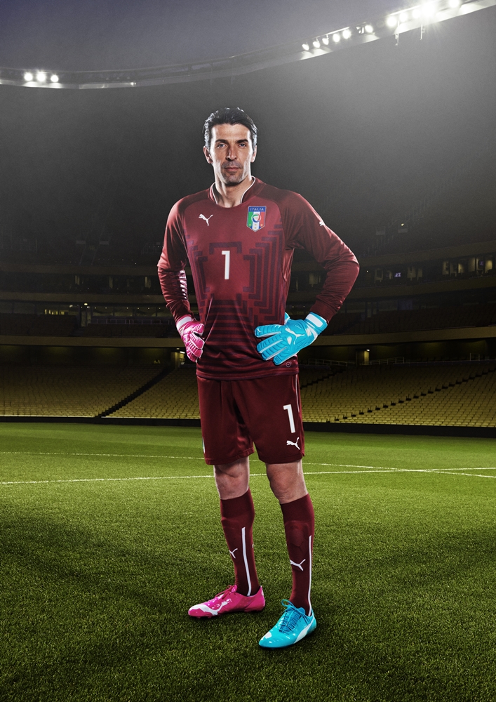 イタリア代表の守護神、ジャンルイジ・ブッフォンは、ゴールキーパーグローブも「トリックス」。川島や西川もこの“上下アシンメトリースタイル”で本大会を戦う。