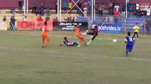 ペルシラハのFWアキル・ファイルースは、相手GKが弾いたボールに反応。ここで両者が接触したのだが、その際、相手GKのキックがファイルースの腹部を直撃しピッチに倒れ込むシーンがあった。