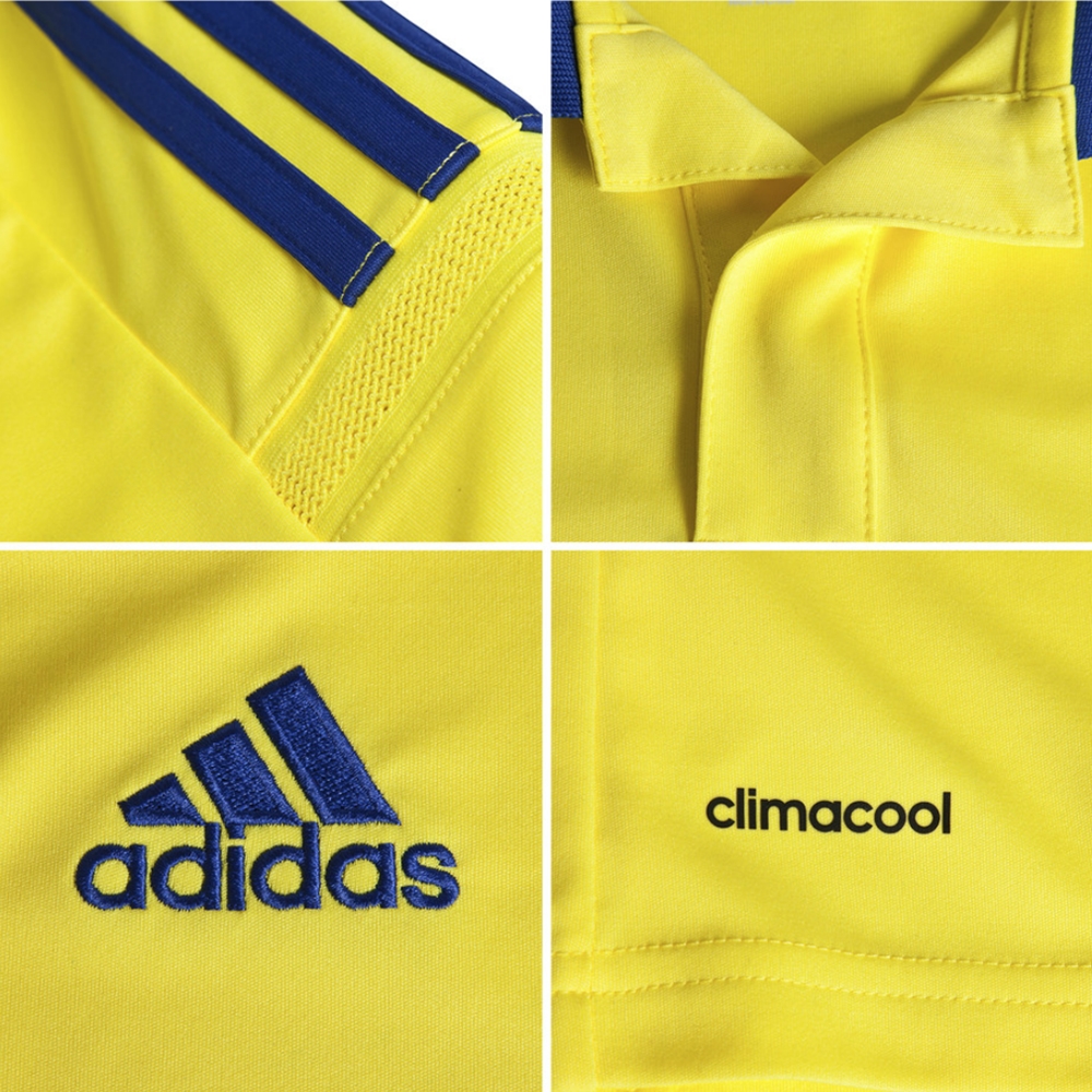 ブルーズの新しいアウェイは、クラブの伝統的なアウェイカラーである黄色をベースに、襟と三本線、袖口などに濃い青が配されたデザインとなった。