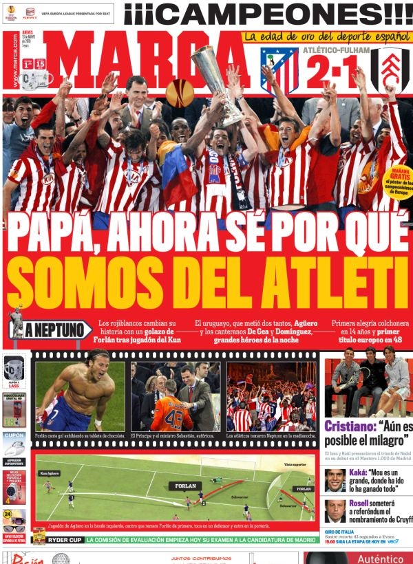 ちなみに、アトレティコが2010年にUEFAヨーロッパリーグで優勝した際、地元メディア『MARCA』がこのスポットのアンサー的な見出しをつけて大きな話題となった。