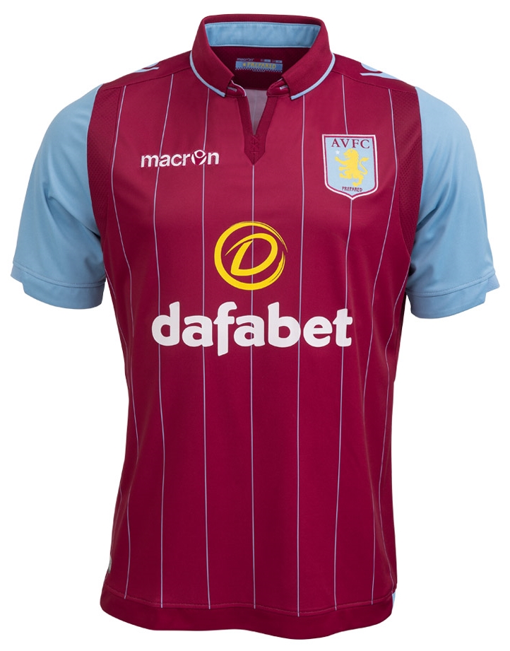 Macronと契約してから3シーズン目を迎える、アストン・ヴィラの2014-15モデルは、伝統のワインレッドと水色袖の組み合わせにピンストライプ柄を採用。襟開きの切り込みなどオーソドックスなデザインながらもMacronらしさの表れた仕上がりとなっている。