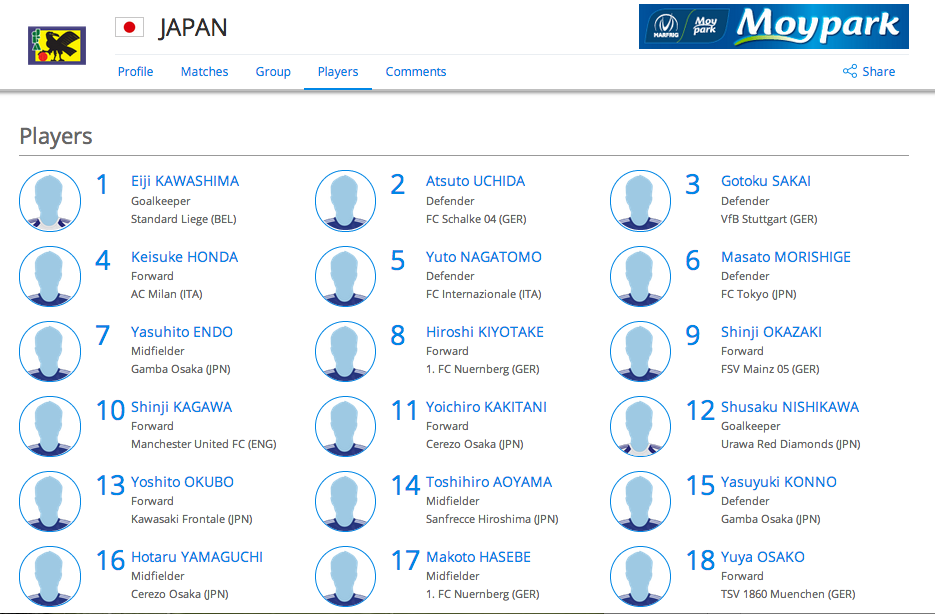 今回のリストには名前や生年月日のほか背番号などの細かなデータも記載されており、国際Aマッチの出場試合数で日本代表MF遠藤保仁が全736選手中2位となる143キャップであることも判明している。ちなみに1位はスペイン代表GKイケル・カシージャスによる153。
