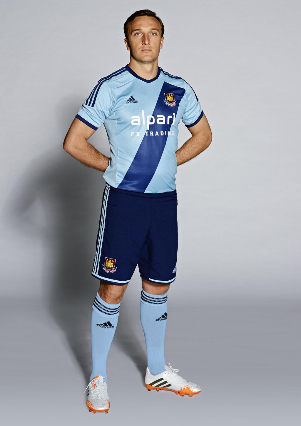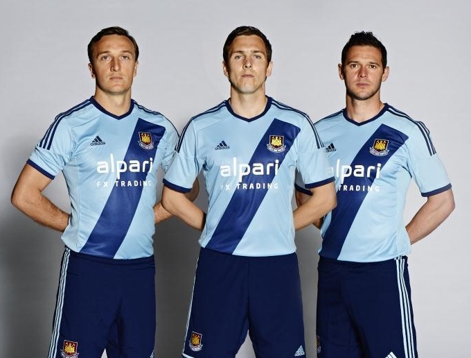 ウェストハムは5日、2014-15シーズンに向けて新しいアウェイユニフォームを発表。デザインはアウェイカラーとして使われることが多い水色をベースに、紺のタスキモチーフを採用した。