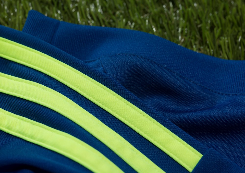 アウェイは伝統的なアウェイカラーである濃い青で、それをさらに濃淡で塗り分けたアシンメトリーデザイン。差し色のネオンカラーは近年の定番だ。