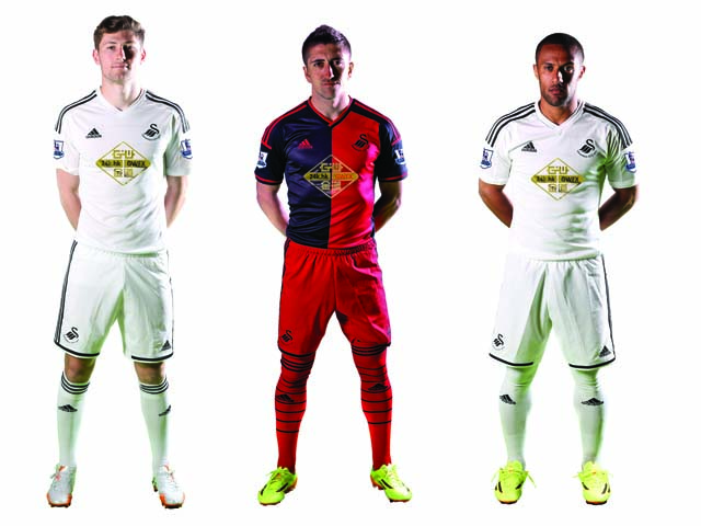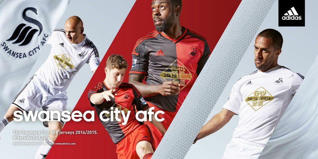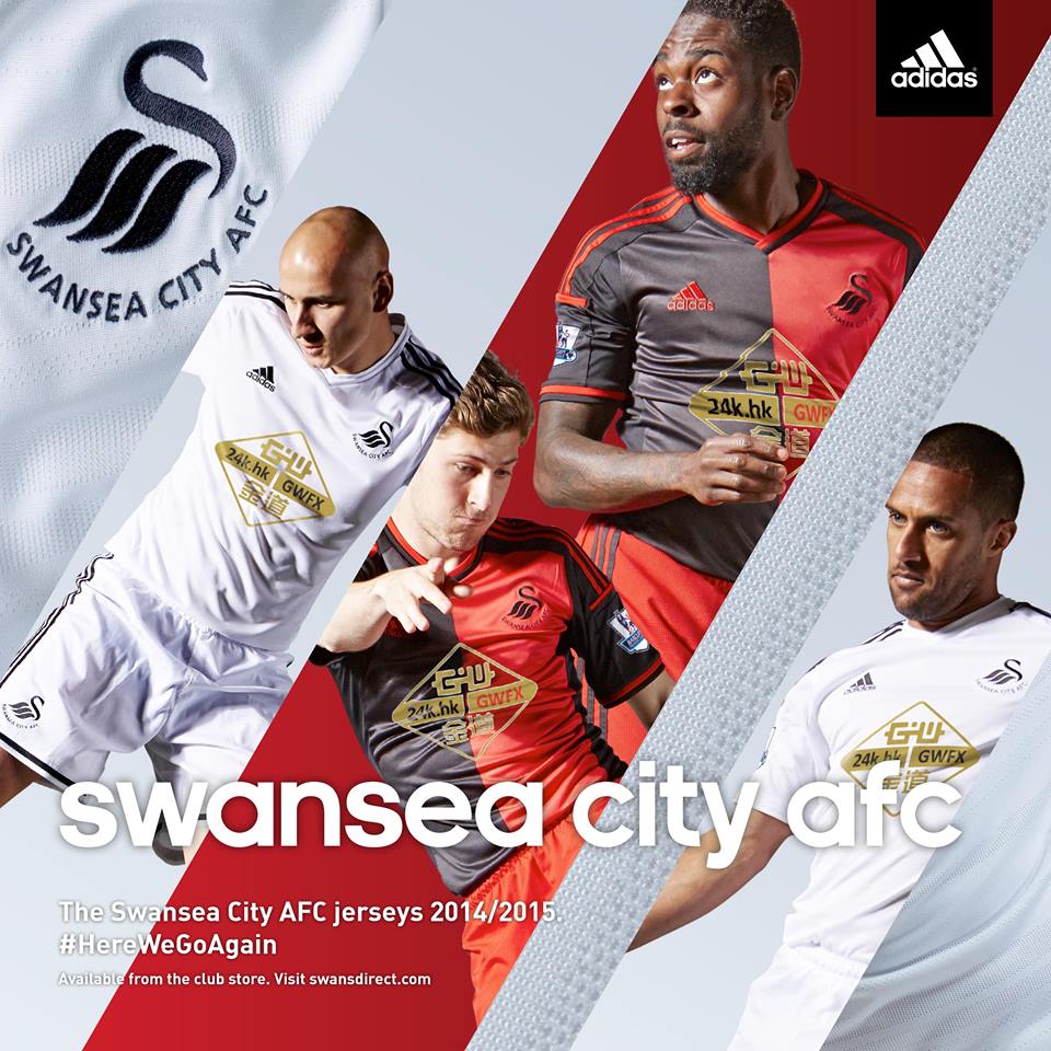 暫定だったモンク監督とシーズン終了後、正式に3年契約を結んだスウォンジーは21日、2014-15シーズンに向けた新ユニフォームを発表した。