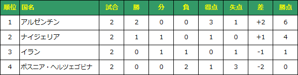 アルゼンチン対ナイジェリアでナイジェリアが敗れた場合のみ、ナイジェリアと得失点差(総得点)を争う