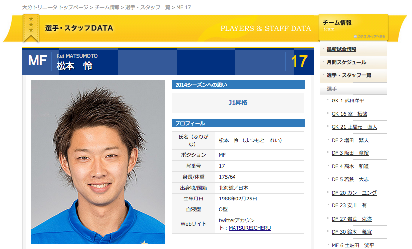 ちなみに、松本怜は2010年に早稲田大学から横浜F・マリノスに加入したサイドアタッカーである。50m5.7秒とも言われるスピードスターで、昨シーズンより大分トリニータに期限付き移籍している。