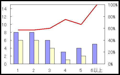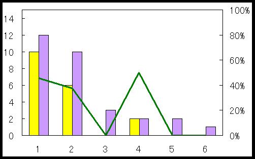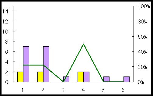 ところが、失点になると話が変わります。こちらは失点数が少ない方が強いはずなので、決勝T全体を熱かった<図7>と1回戦のみの<図8>では、他の図とは色を変えました。