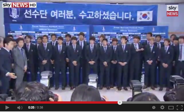 ブラジルから帰国し、仁川国際空港でフォトグラファーからの写真撮影に応えていた韓国代表選手を待っていたのは・・・なんと大量の飴。韓国では、相手に飴を投げる行為は侮辱的な行為にあたるそうで、未勝利のまま帰国の途についた選手たちにとってはとんだ災難であった。