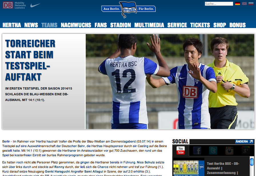 試合は13-1でヘルタBSCが圧勝。元オランダ代表ジョニー・ハイティンハも先発出場を果たした。