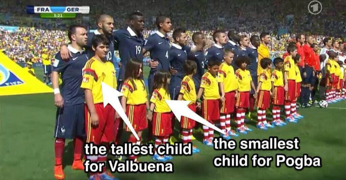 しかしよく見ると、なぜか166cmのヴァルブエナに一番高い子供、191cmのポール・ポグバに一番低い子供が付くというミスマッチが。“調整”に失敗してしまったのだろうか?