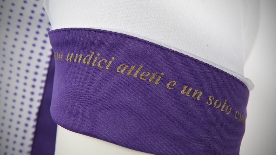 サイドにはグラデーションのドット柄。首の後ろには “FIORENTINA”の文字が入れられている。