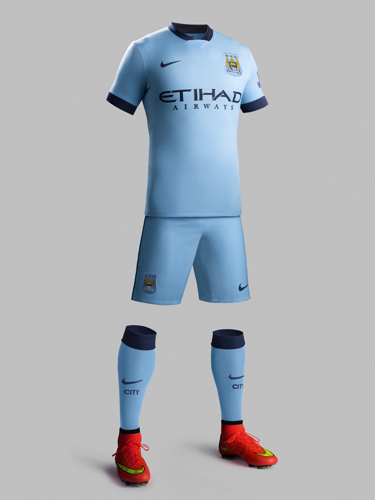 昨年からNikeと契約しているシティだが、今回一番大きな変更と言えるのがパンツカラー。最終節の奇跡的な逆転劇で優勝した2011-12シーズン以来となる、シャツと同色のパンツを採用し、全身スカイブルーのコーディネートとなっている。(全身同色自体はシティの歴史においてそれほど珍しくはない)