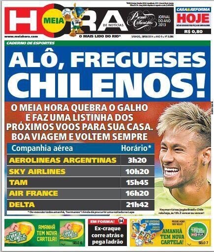 ブラジルvsチリ戦前のブラジルの新聞。