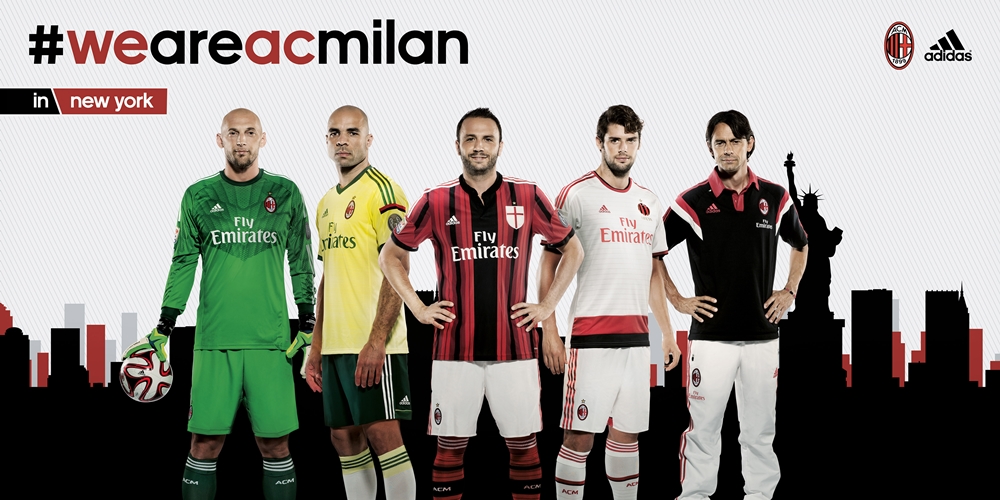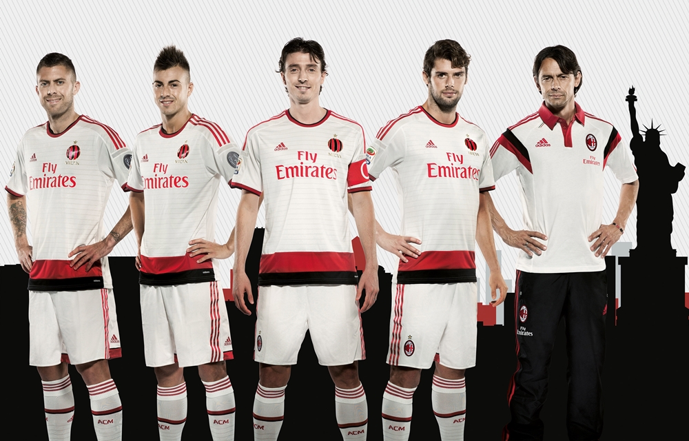 2014-15シーズンのミランのユニフォームラインナップ。今回のアメリカ遠征ではインターナショナル・チャンピオンズカップに出場し、オリンピアコスやマンチェスター・シティ、リヴァプールなどと対戦する。