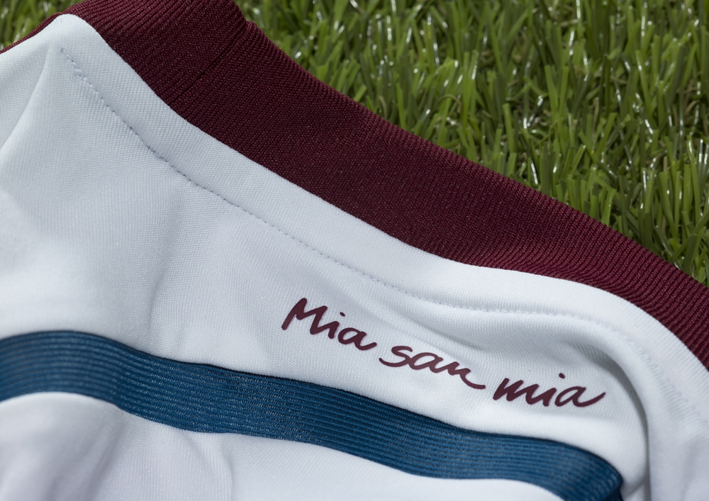 後身頃の上部にはお馴染みのクラブスローガン、“Mia san mia”(俺たちは、俺たちだ)。