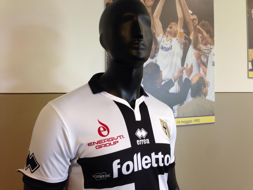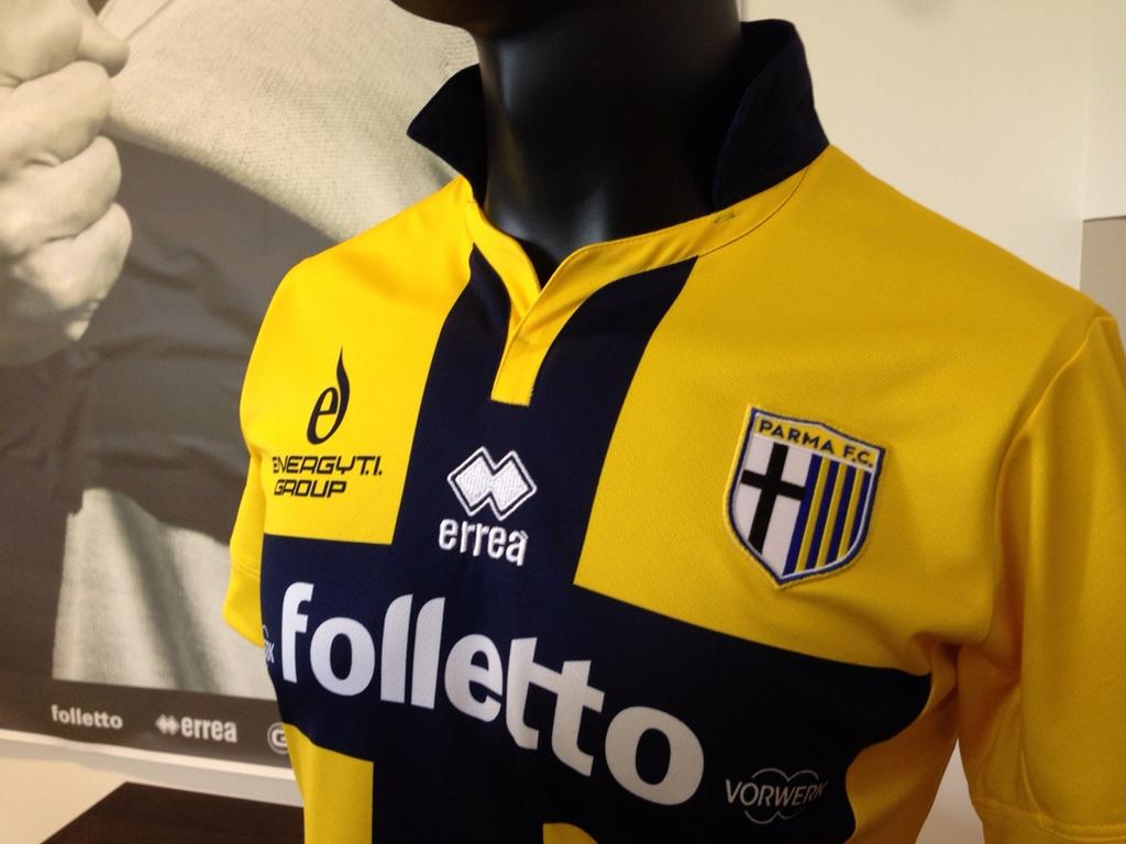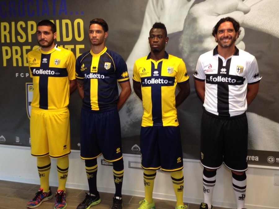 パルマのユニフォームは近年、「クロチャーティ(十字軍の戦士)」の愛称で知られる伝統的なクロスモチーフが定着しており、2014-15モデルも白のホームと黄色のサードでこのデザインが採用されている。
