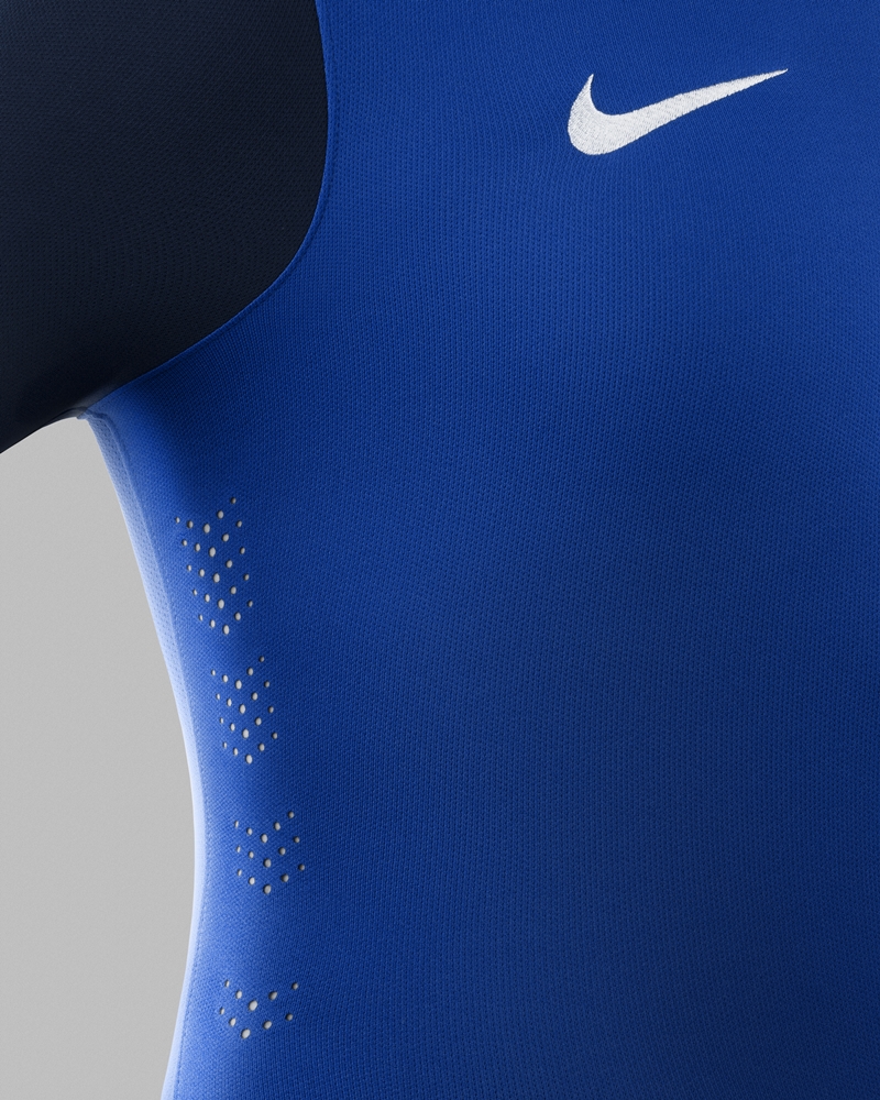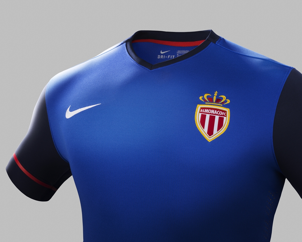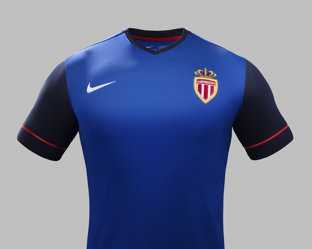 伝統の青をベースに、「地中海の宝石」とも言われるモナコらしく濃淡2色の青で海を表現したデザイン。袖にはクラブカラーである赤のラインが入れられている。