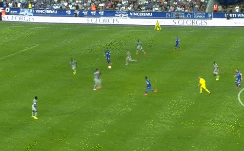 試合は早い時間から激しく動く。まずは9分、かつて練習中に心臓病で倒れ生命の危機を経験し、2年のブランクを経て不死鳥のように蘇ったことで知られるクリストフェル・マブルがこの見事なシュート! これはハメス・ロドリゲスにも負けない弾道ですよ。