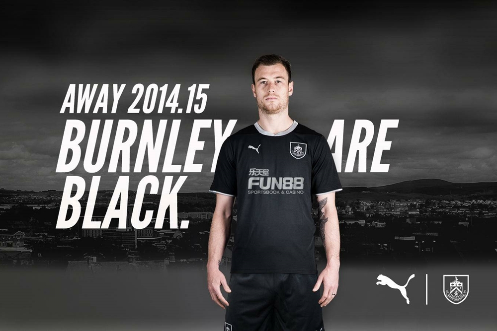 バーンリーの2014-15アウェイは、クラブ史上初となる全身黒のキットを採用。首まわりや袖口、さらには胸のロゴなどにもシルバーを配した渋めのデザインとなっている。