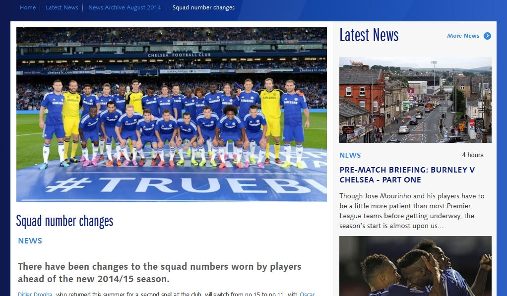 12日にスタンフォード・ブリッジで行われた新チームのお披露目では、オスカルがこれまで通りの11番、2年ぶりに復帰したドログバは最初にチェルシーへ加入した頃に着けていた15番となっていたが、その後、急きょオスカルがフランク・ランパードの8番を継承することが決定。