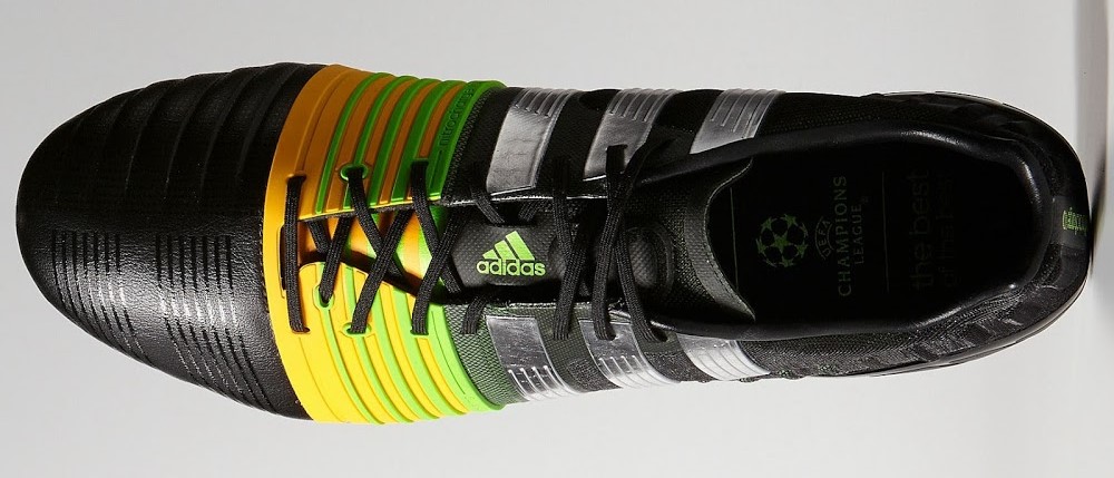 前足部のアッパーは、フィット性に優れた人工カンガルー調レザー(シンセティックKレザー?)を新たに採用。また、インサイド側には引き続きクッション性の高いフォーム素材を配しているが、形状はよりボールコントロール性を考慮したものに進化した。