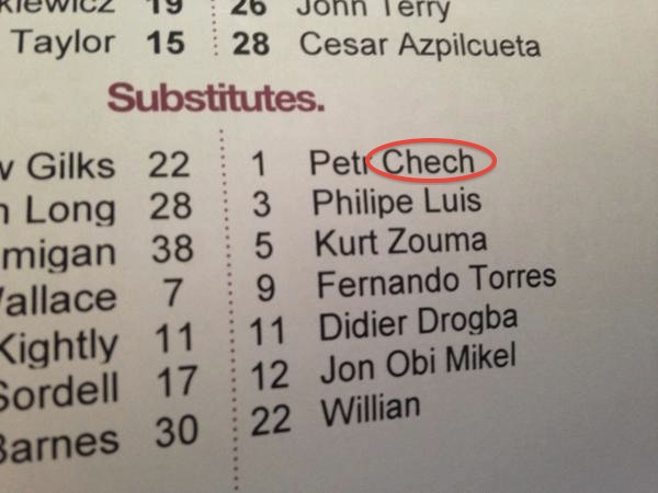 To add insult to injury, Burnley have spelled Petr Cech's name wrong on the official teamsheet (& Felipe Luis