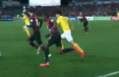 うまく行かないイライラが募る広州は前半から荒れ模様。15分には広州の選手がユリッチをボールのないところで蹴っている場面も。