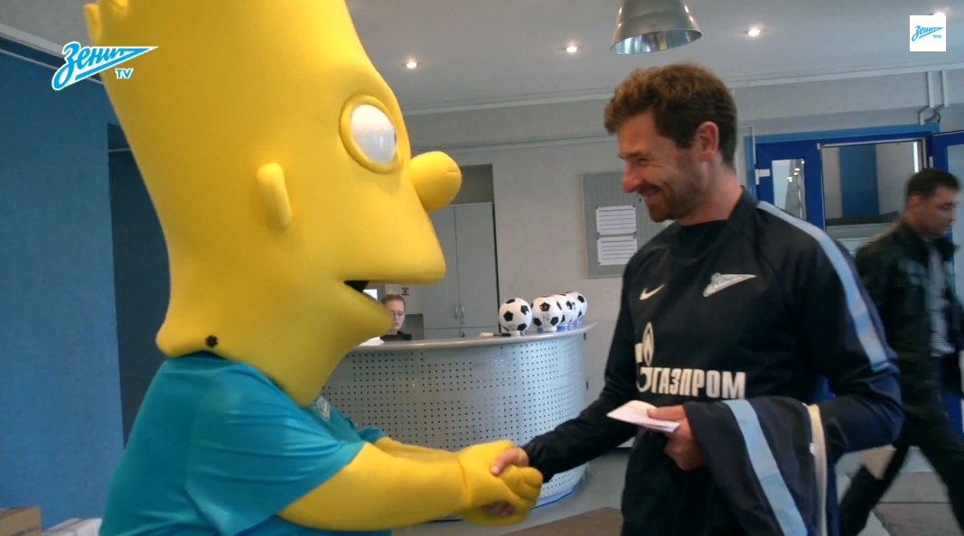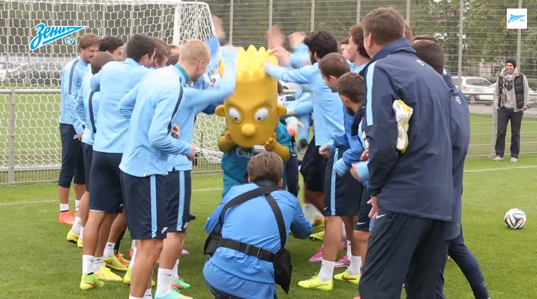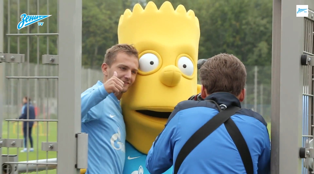 新入団選手らしく迎えられ、ゼニトの一員となったバート・シンプソン。今後は既存の青いライオンのマスコットとともに、近々ゼニトのホーム、ペトロフスキー・スタジアムに登場することになるようだ。