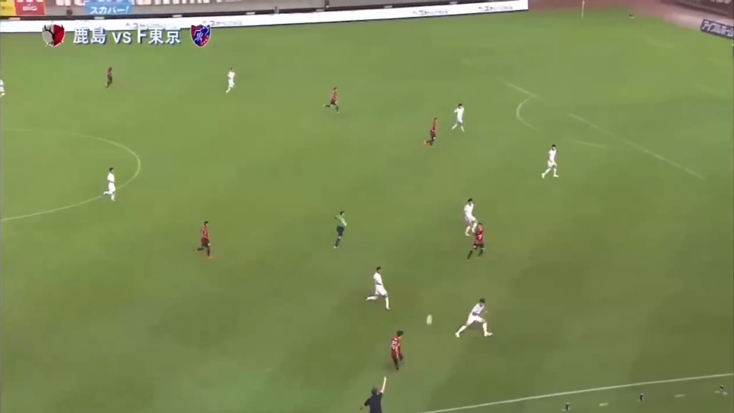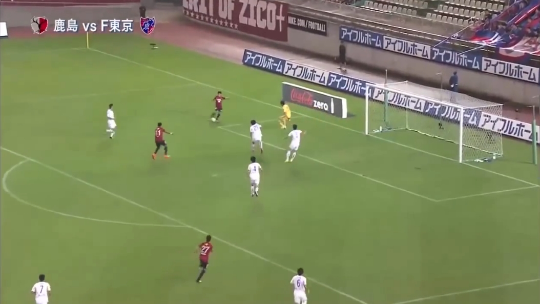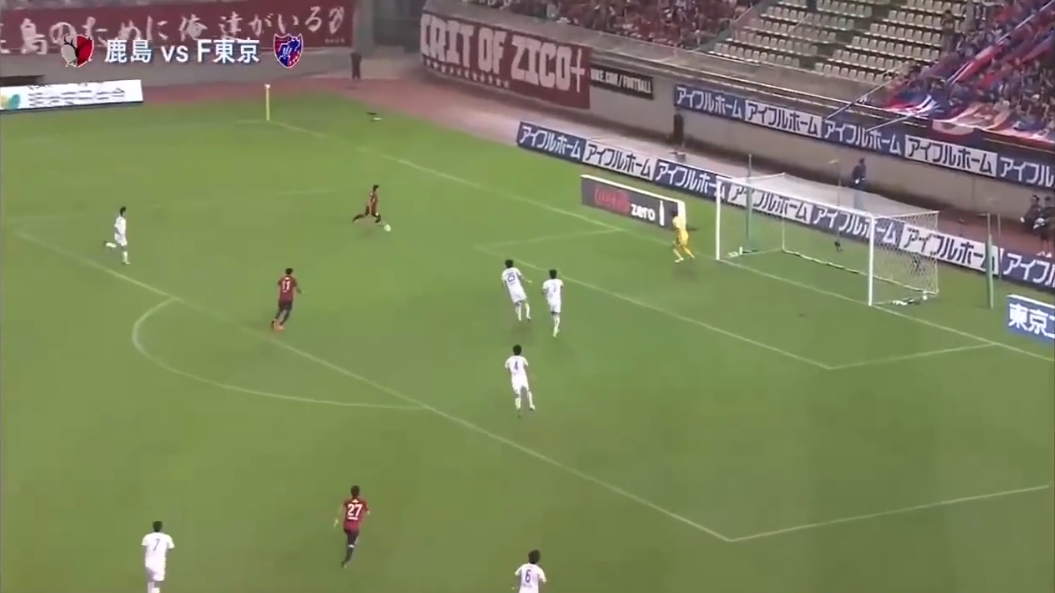 これは鹿島の1点目。右サイドの西大伍からのロングパス。