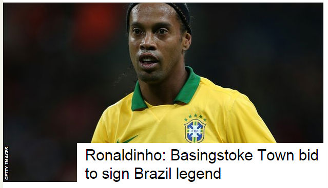 英『BBC』や『ESPN』などによると、イングランド6部のベイジングストーク・タウンが元ブラジル代表MFロナウジーニョにオファーを出したと伝えている。