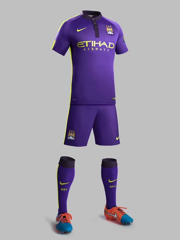 シティは15日、 空色のホーム、青のグラデーションが特徴のアウェイに続く、2014-15シーズンの新ユニフォームを発表。カップ戦向けのキットとして、紫のサードユニフォームが登場した。