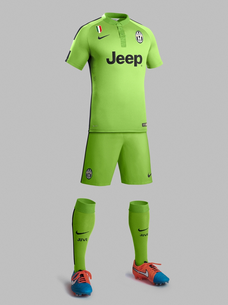 Nikeの「FLASH KIT」として発表されたのは、ユヴェントスでは珍しい緑のユニフォーム。シャツの内側には他のユニフォーム同様、クラブのモットーである“Fino alla fine”(最後まで諦めない)の文字が見える。