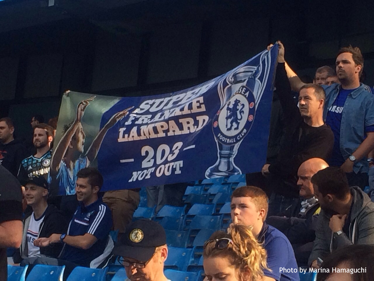 正式に発表されたマン・オブ・ザ・マッチはマンガラでしたが、場内スクリーンはずっとランパードを映していましたし、帰りの電車も彼の偉大さについて話す人でいっぱいだったので誰が真の主役だったかは言うまでもありませんね。この日見たバナーは、いつもより一層輝いて見えた気がします」