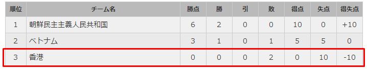 香港は北朝鮮、ベトナムと同じC組に入ったが、