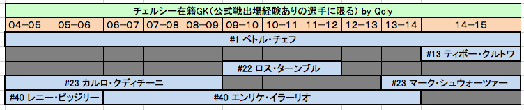 こちらがチェルシーのGKの過去の在籍を表した図である。