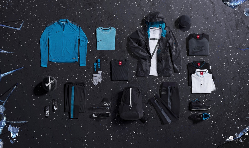 こちらは最新の「CR7コレクション」。黒をベースに鮮やかなブルーが目を引く。