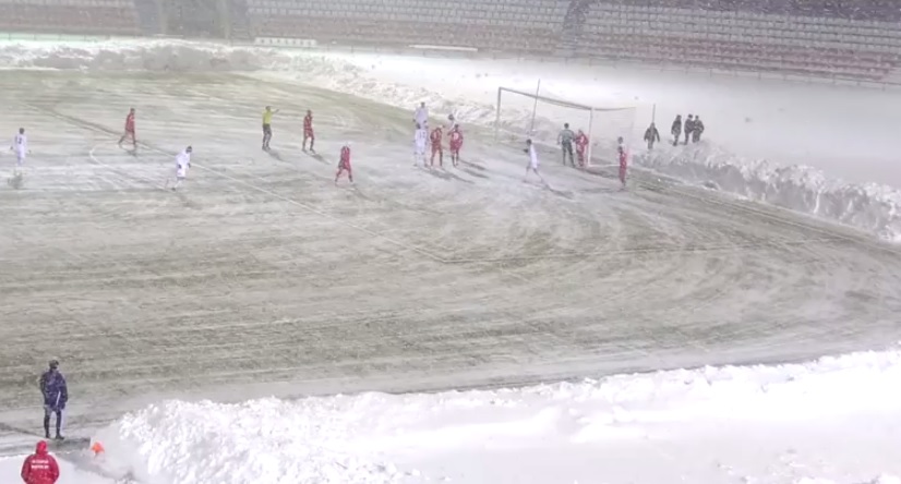 スタジアムには雪が積もり、ピッチ脇にうず高く積まれた雪、雪、雪…。試合開催のために涙ぐましいグラウンド整備が行われたそうで、気温はなんとマイナス8度!だったとか。途中からは吹雪のような辛い状況にもなった試合はアウェイのノスタが1-0で勝利を収めている。