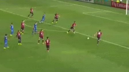 64分、左サイドバックのゴレツがダイレクトで鋭いアーリークロスを入れると、最終ラインの裏に飛び出したトミ・ユリッチが合わせる!
