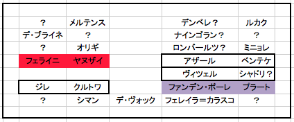 Qolyのベルギー担当、編集部Sが見た感じの座席配置はこんな感じ。バスの作りが分からないこと、距離感が掴めないこと、特に後部座席の選手の顔が分からないこと、また撮影に際し選手が移動していることなど様々なエクスキューズはあるが、あくまで予想だと仮定して楽しんでいただきたい。