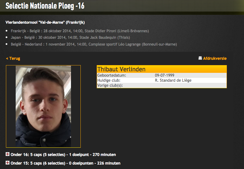 U-16代表でもしっかりと選手情報を掲載しているあたりは、さすがはインターネット配信に積極的なベルギーサッカー協会である。