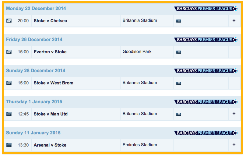 なお、ストークは12月2日にユナイテッド戦、6日にアーセナル戦も。