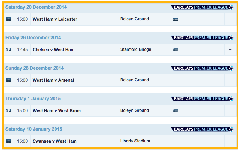 現在5位につけるウェストハムに待ち受ける試練は、わずか3日のうちに行うチェルシー戦からのアーセナル戦。き、きびしい。