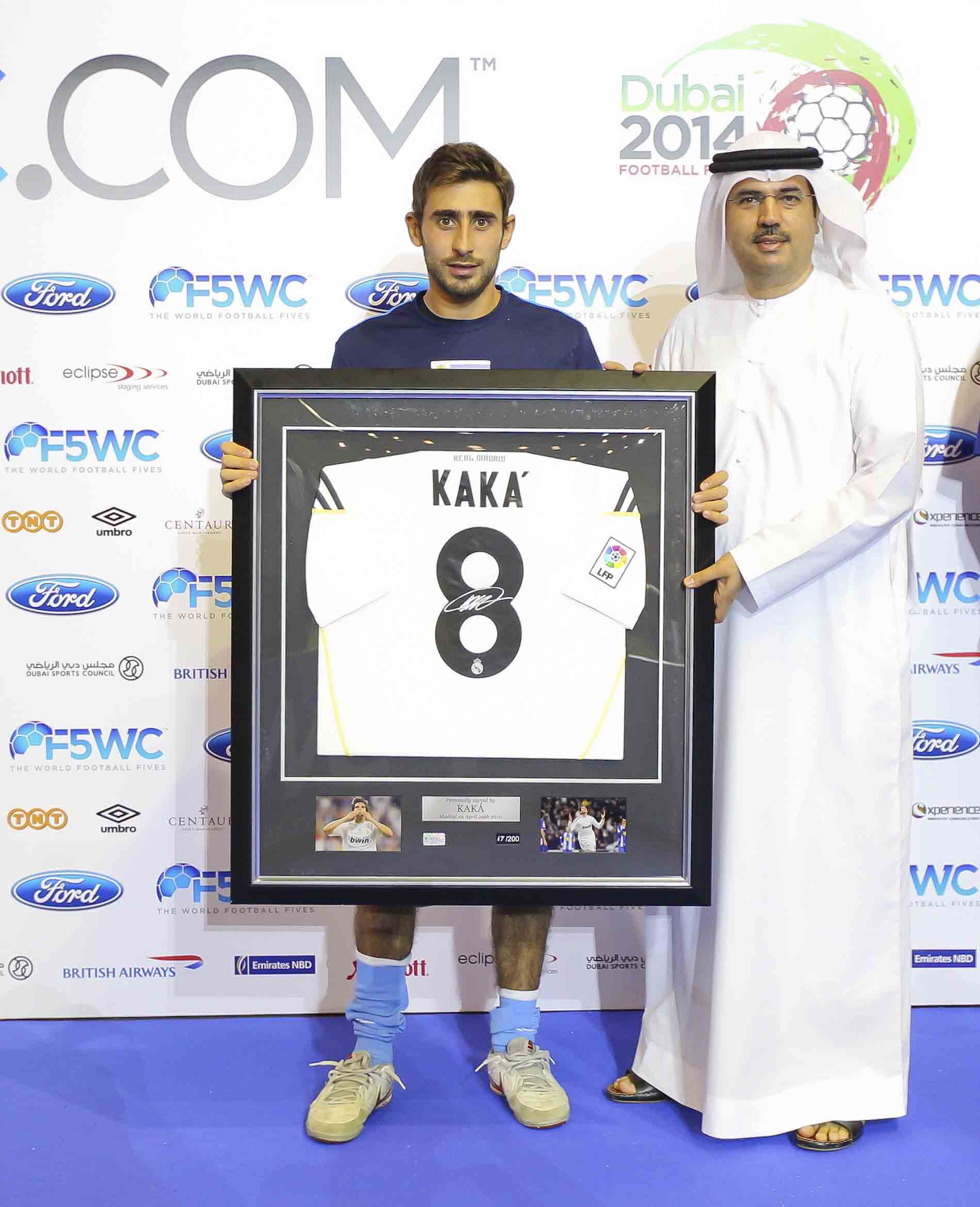 商品のカカーユニフォームをもらってにっこり。
