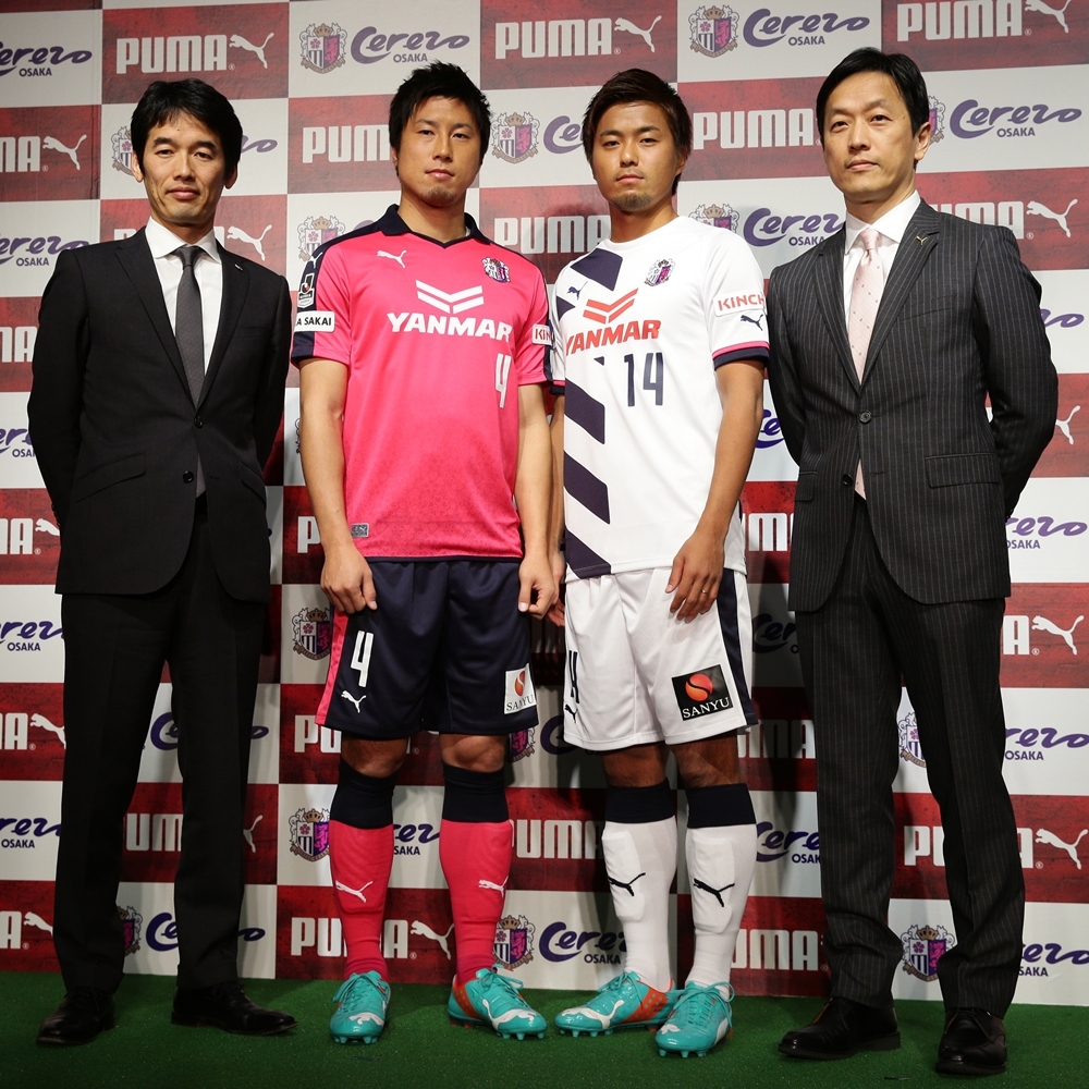 2009シーズン以来となるJ2での戦いに向けて、元・鹿島アントラーズのパウロ・アウトゥオリ監督を迎えたC大阪は20日、かねてからの噂通り、プーマとオフィシャルサプライヤー契約を締結したことを発表。2015シーズンに向けた新ユニフォームをお披露目した。(写真:プーマジャパン)